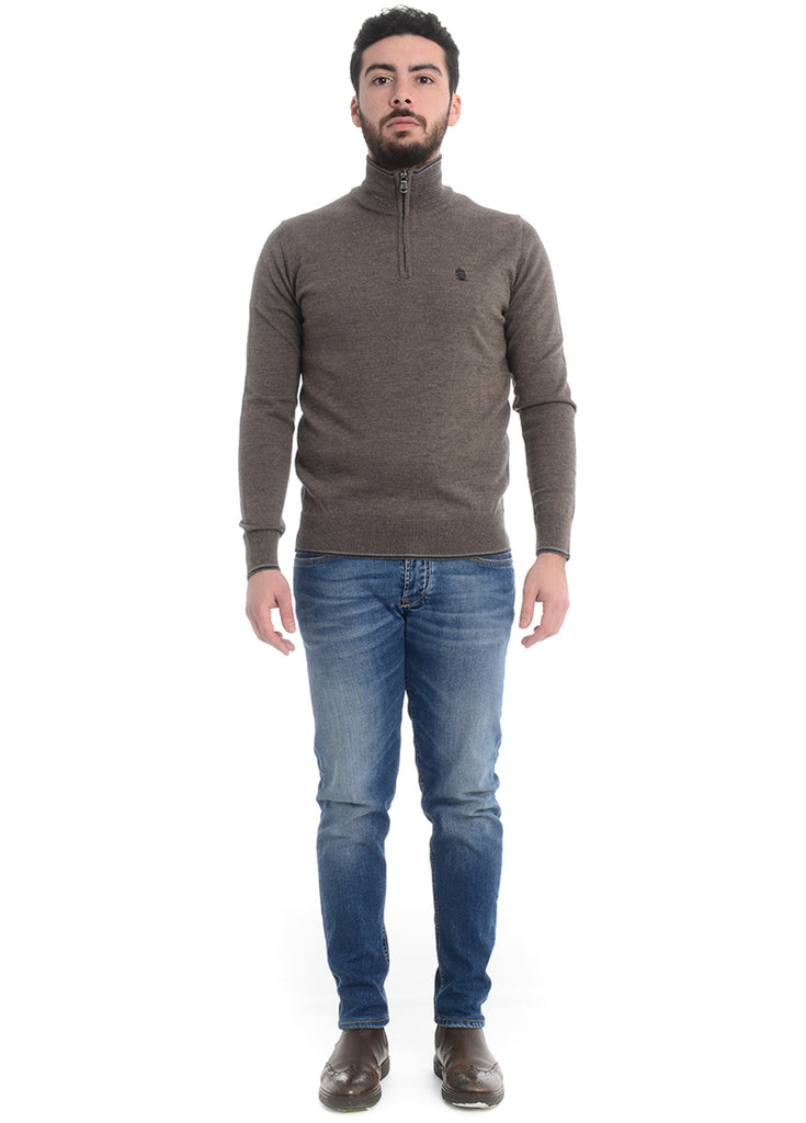 Maglia lupetto con zip marrone MARINA YACTHING